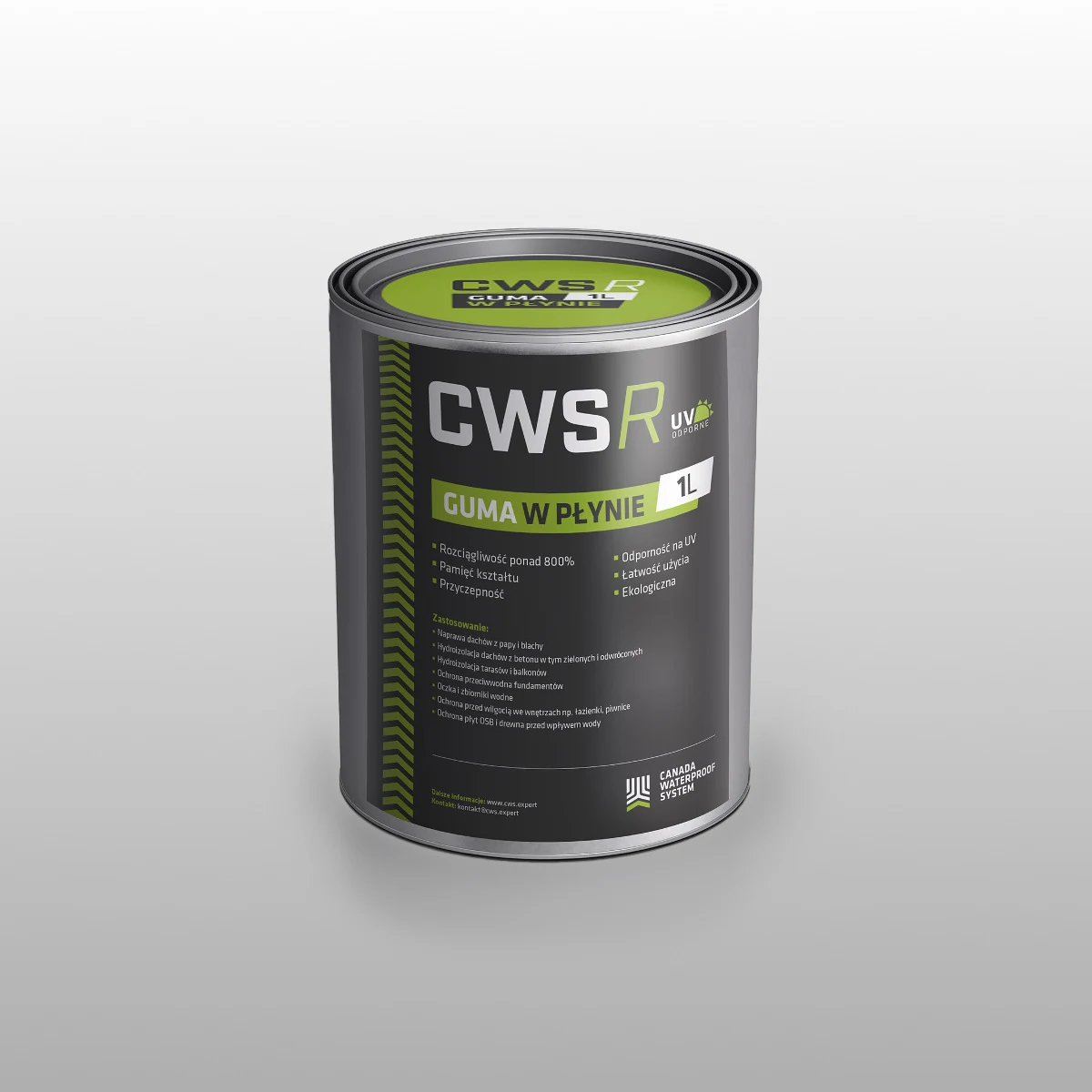 Guma w płynie CWS R służy do ochrony przed wodą i wilgocią dachów oraz tarasów. Dlaczego wybrać płynną gumę do naprawy przeciekającego dachu? Ponieważ płynna guma CWS R tworzy bezszwową, szczelną membranę, która jest elastyczna i pracuje wraz z podłożem, które zwiększa i zmniejsza swoją objętość w zależności od temperatury otoczenia. Co to oznacza? Guma w płynie jest odporna na duże wahania temperatur i spełnia swoją rolę o każdej porze roku, nawet po wielu latach nie twardnieje, nie kruszy się jak inne, powszechnie używane materiały hydroizolacyjne.